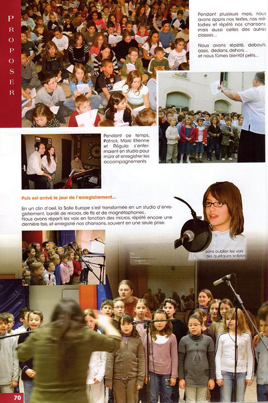Il est temps maintenant d'agrémenter ces chansons par des décors, des costumes, qui bien sûr ne pourront pas figurer sur le CD, mais... Pourquoi pas sur scène, devant les parents ? EXCELLENTE IDEE ! Patrick revient dans l'école pour apprendre aux enfants la mise en scène fraichement créé chez lui, et c'est parti messieurs dames !