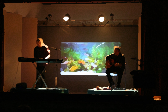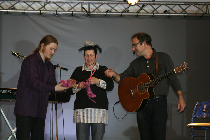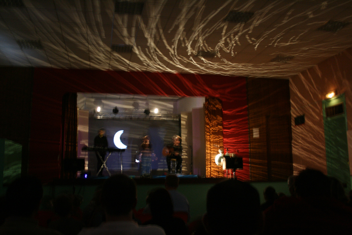 C'est vrai que c'est magique ! Patrick tout doucement arrive avec une petite lumière par le fond de la salle, depuis des années sur cette petite chanson phare "Pour chasser le cauchemar". Là, il prend sa guitare, et accompagné de ses deux musiciens Marc-Etienne et Regula, il nous entraine pendant environ une heure dans une ronde de chansons qui enchantera les petits comme les grands.